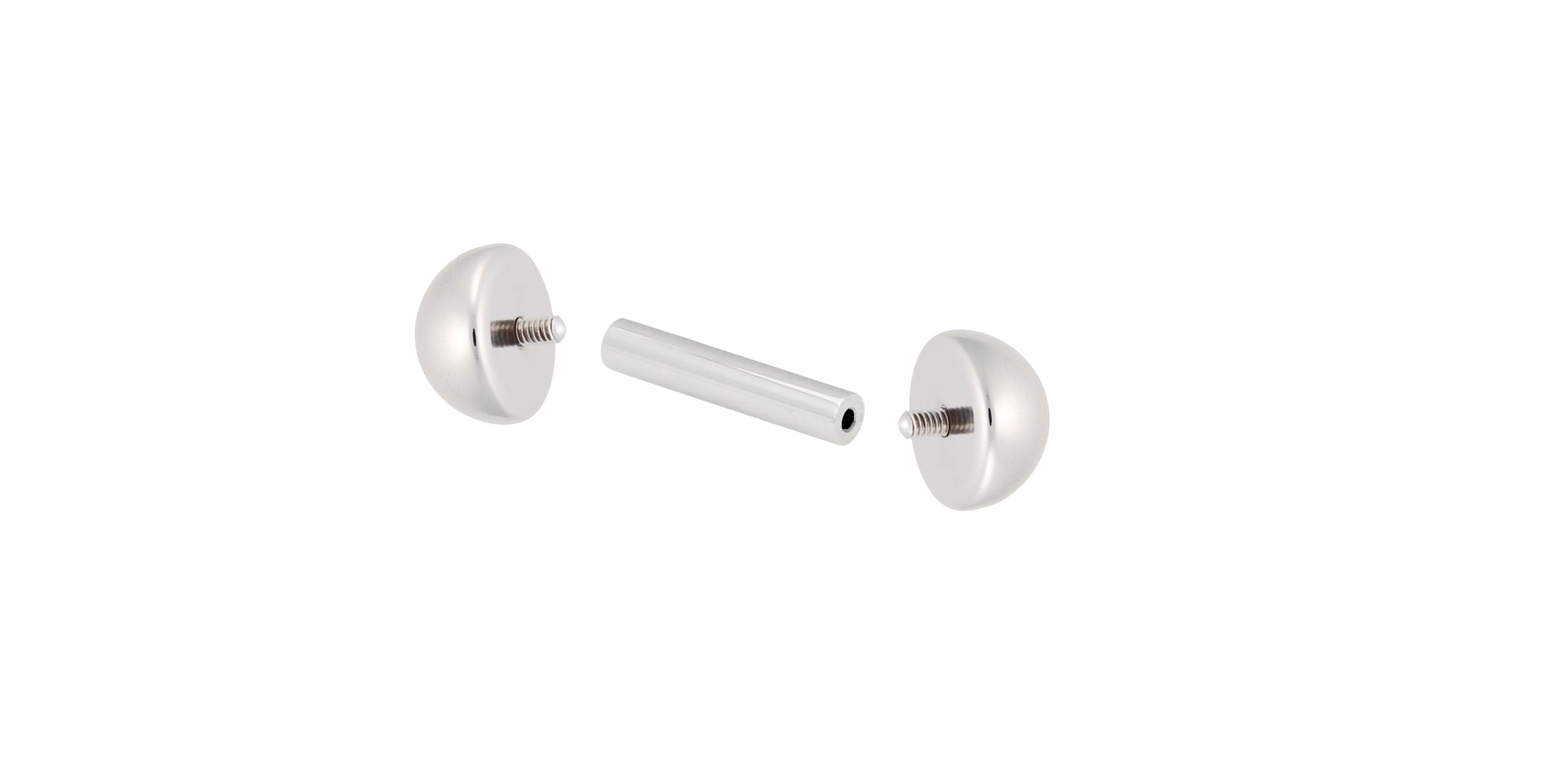 Piercing Barbell aus Edelstahl mit zwei Halbkugeln, hergestellt in Handarbeit.