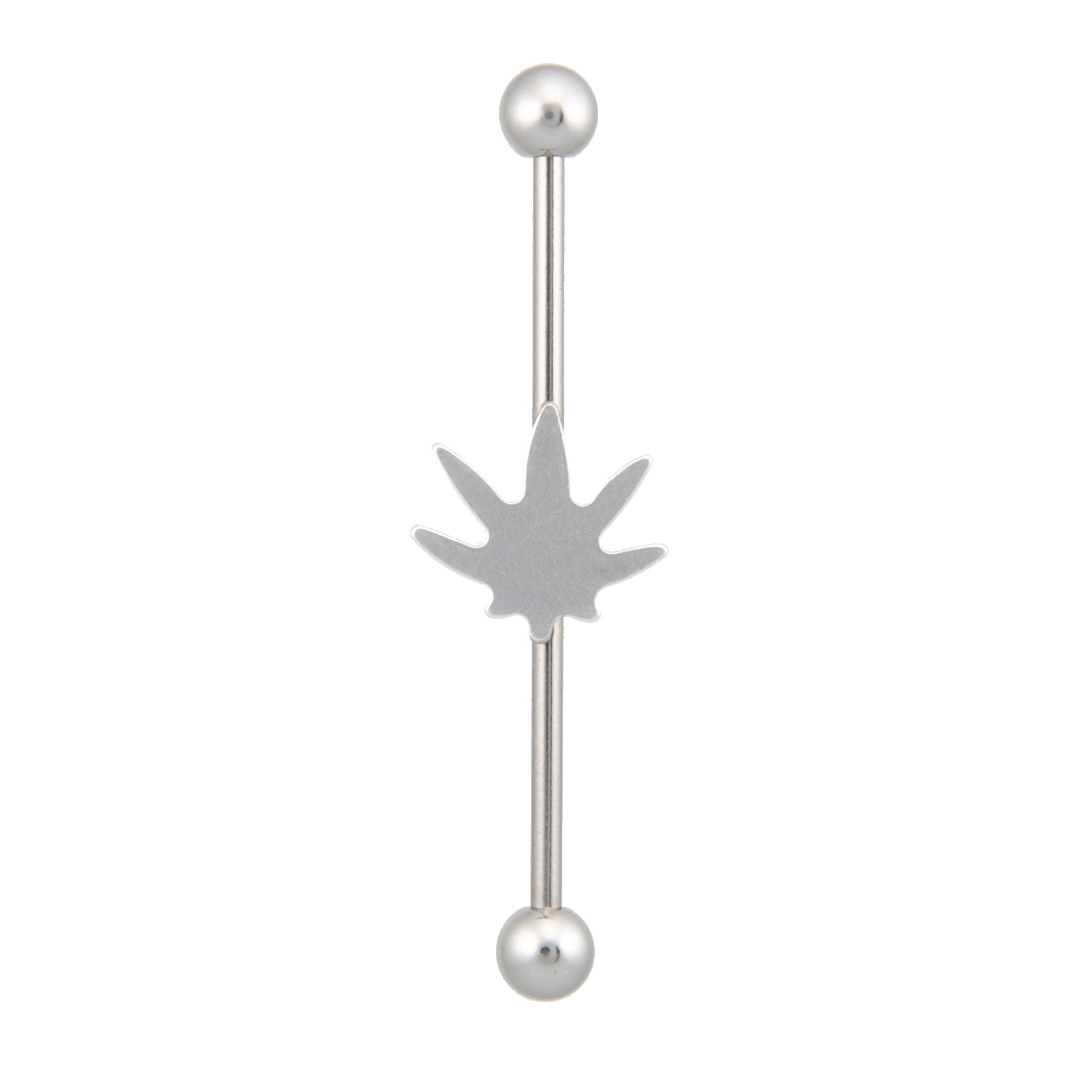 Startseite » Piercingschmuck » Barbell | Ampallang | Zungenpiercing | Brustbarbell » Industrialbarbell Cannabisblatt, Edelstahl