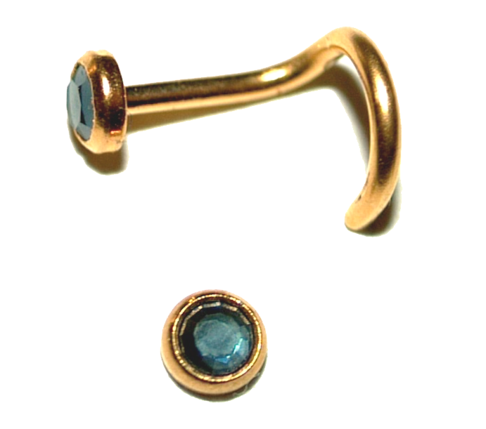 Nasenpiercing aus Gold 750 | 18 Karat | Strass blau