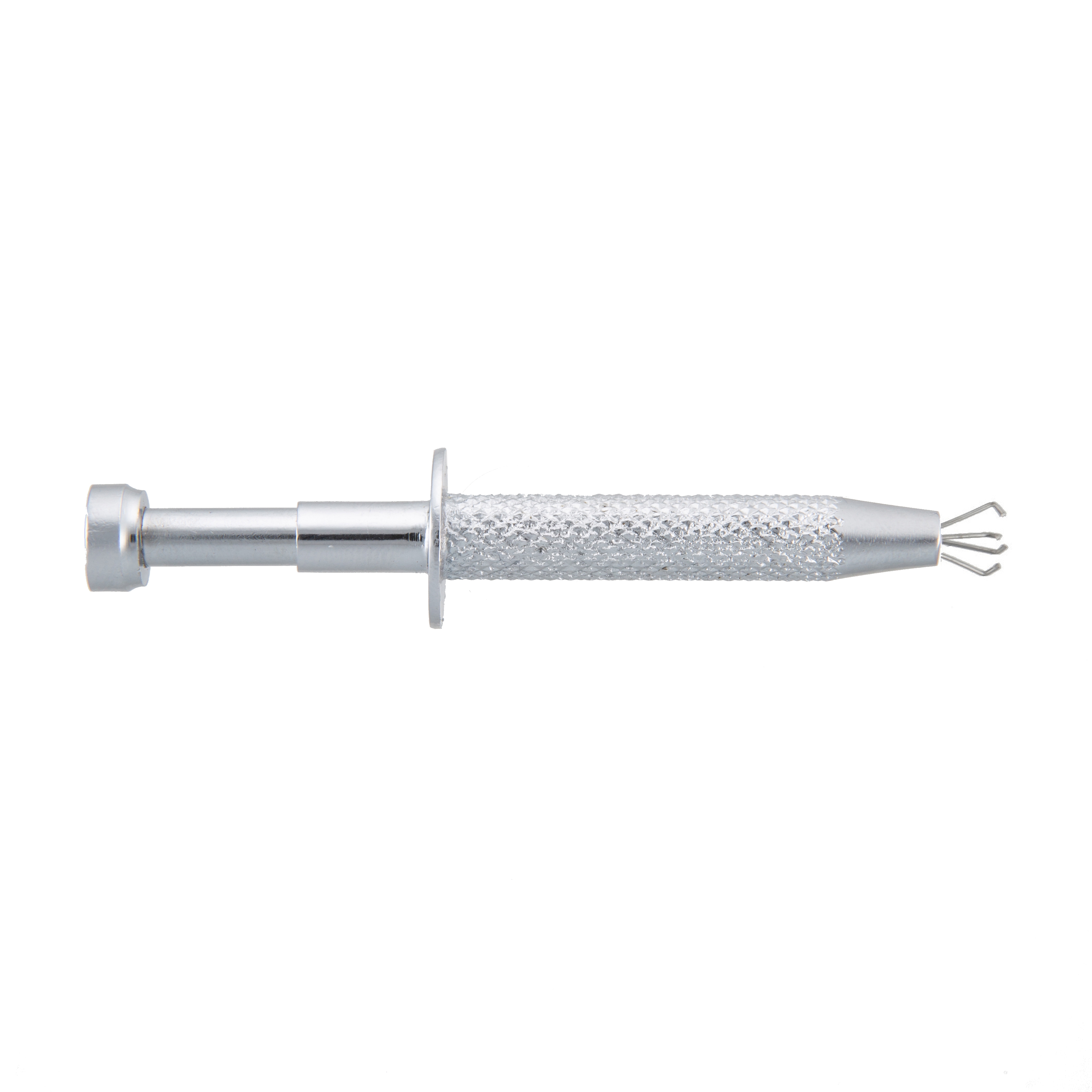 Dank seiner vier Greifarme kann der Piercing Kugel Halter mühelos die Piercing Gewindekugel halten, während sie auf das Piercing geschraubt wird.
