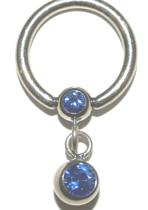 An dieser Straßstein Klemmkugel ist eine Öse angebracht an der wiederum eine Öse mit einer 5mm Straßstein Klemmkugel aus Titan eingehängt ist.